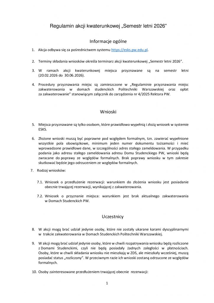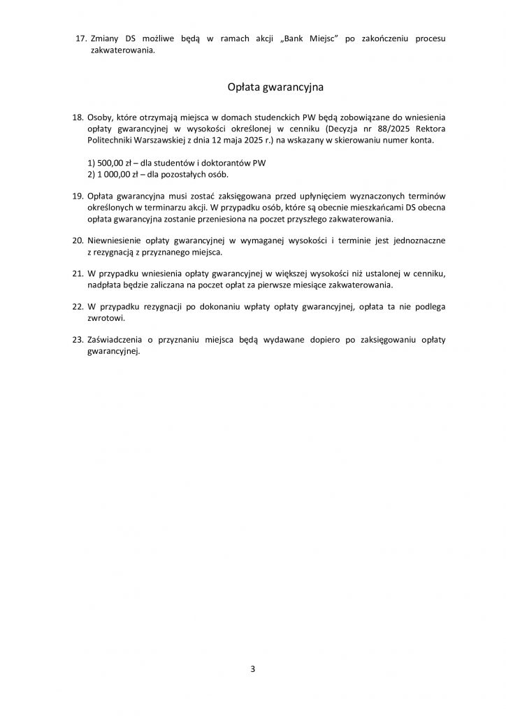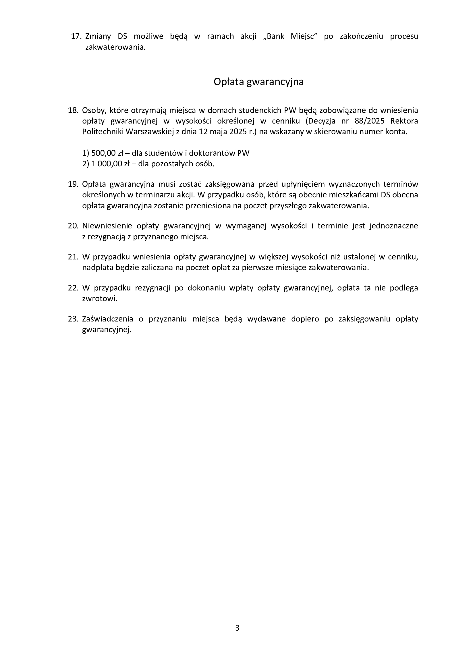 06 lutego 2026 | Ostateczny termin potwierdzenia otrzymania miejsca poprzez zaksięgowanie opłaty rezerwacyjnej na właściwym koncie wskazanym w skierowaniu (dotyczy wniosków o przyznanie miejsca). |
