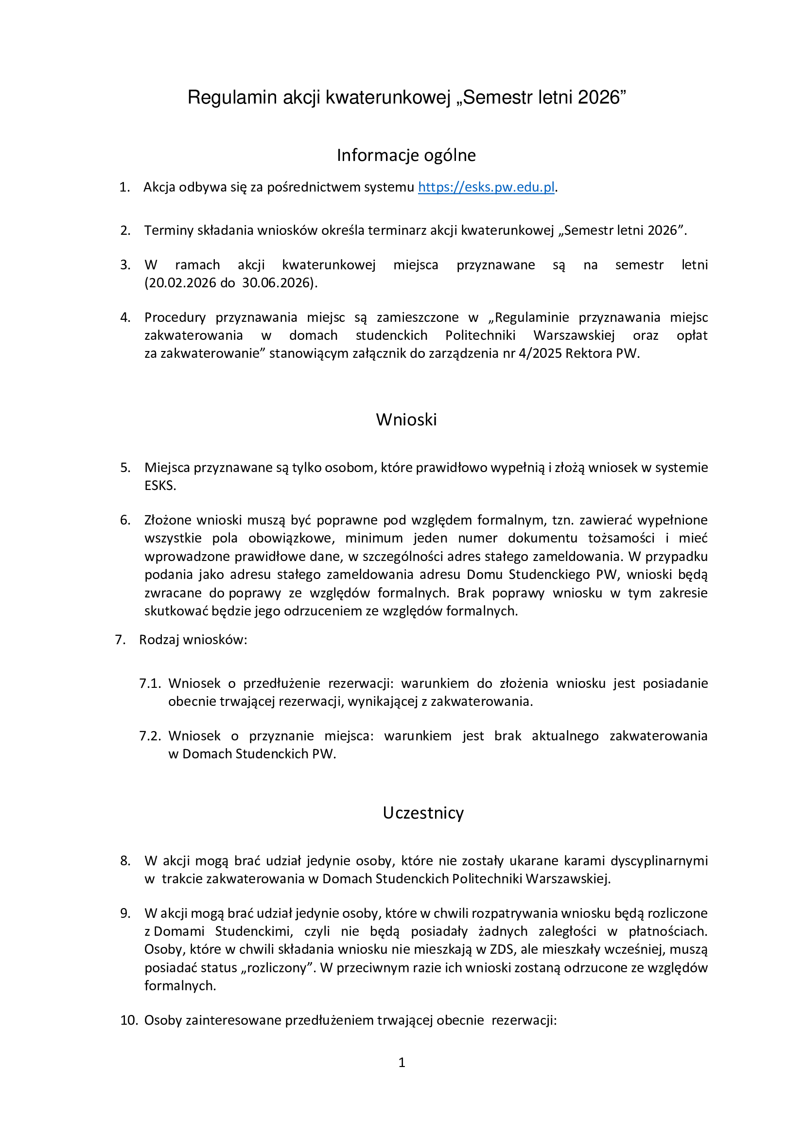 W przypadku pozostałych pytań związanych m.in. z procesem zakwaterowania, regulaminami, cennikami, harmonogramami prosimy o kontakt z Komisjami Kwaterunkowymi.