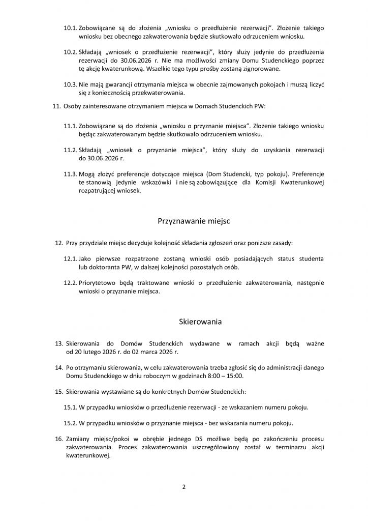 20 lutego 2026 | Pierwszy dzień ważności skierowań (początek procesu kwaterowania osób, którym przyznano miejsce w akcji. |
